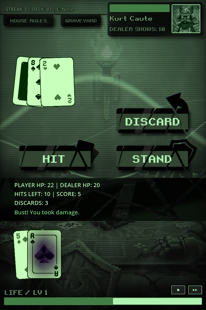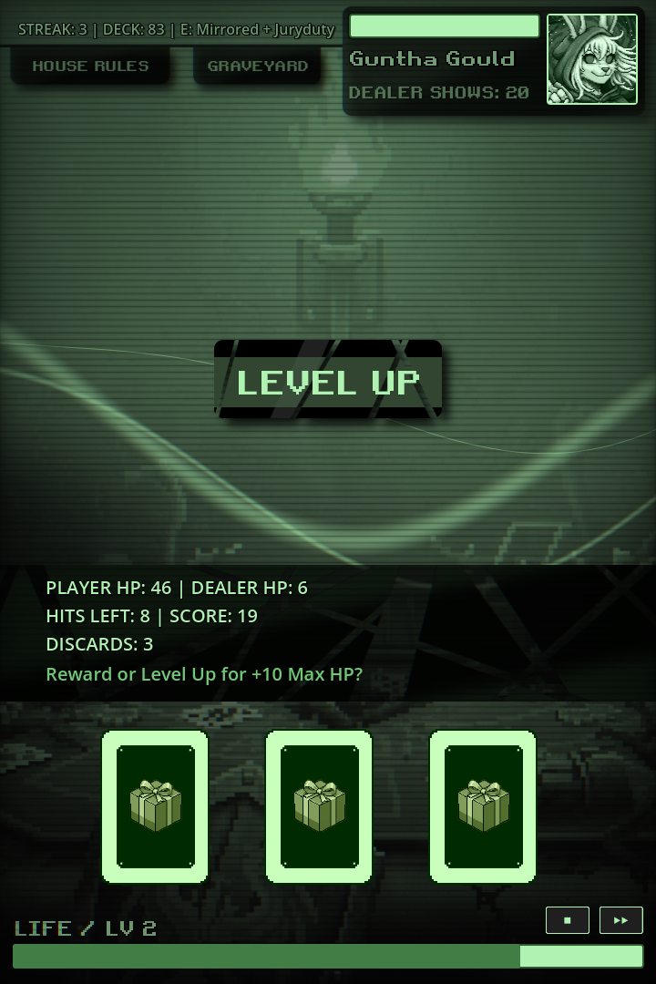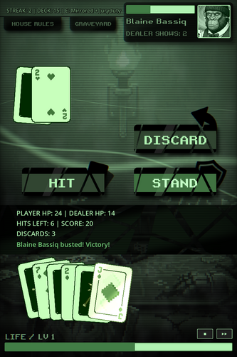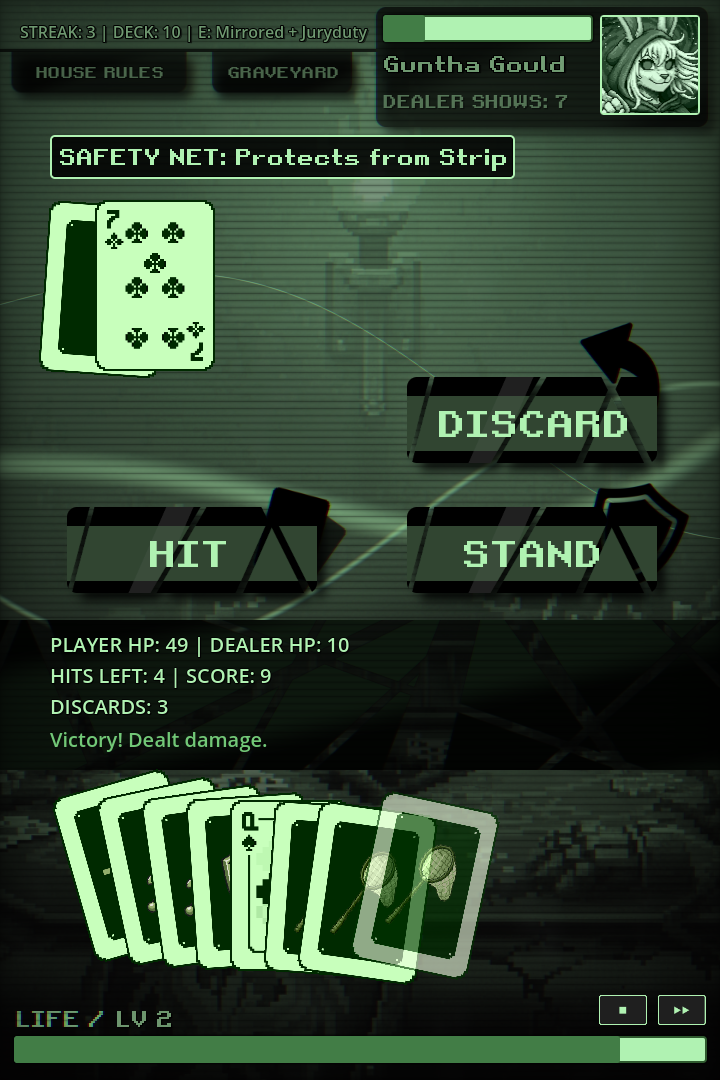 Deviations is a tactical Blackjack Roguelite where every card drawn is a modification to reality. Manipulate the odds in your favor to survive The House's Trial.